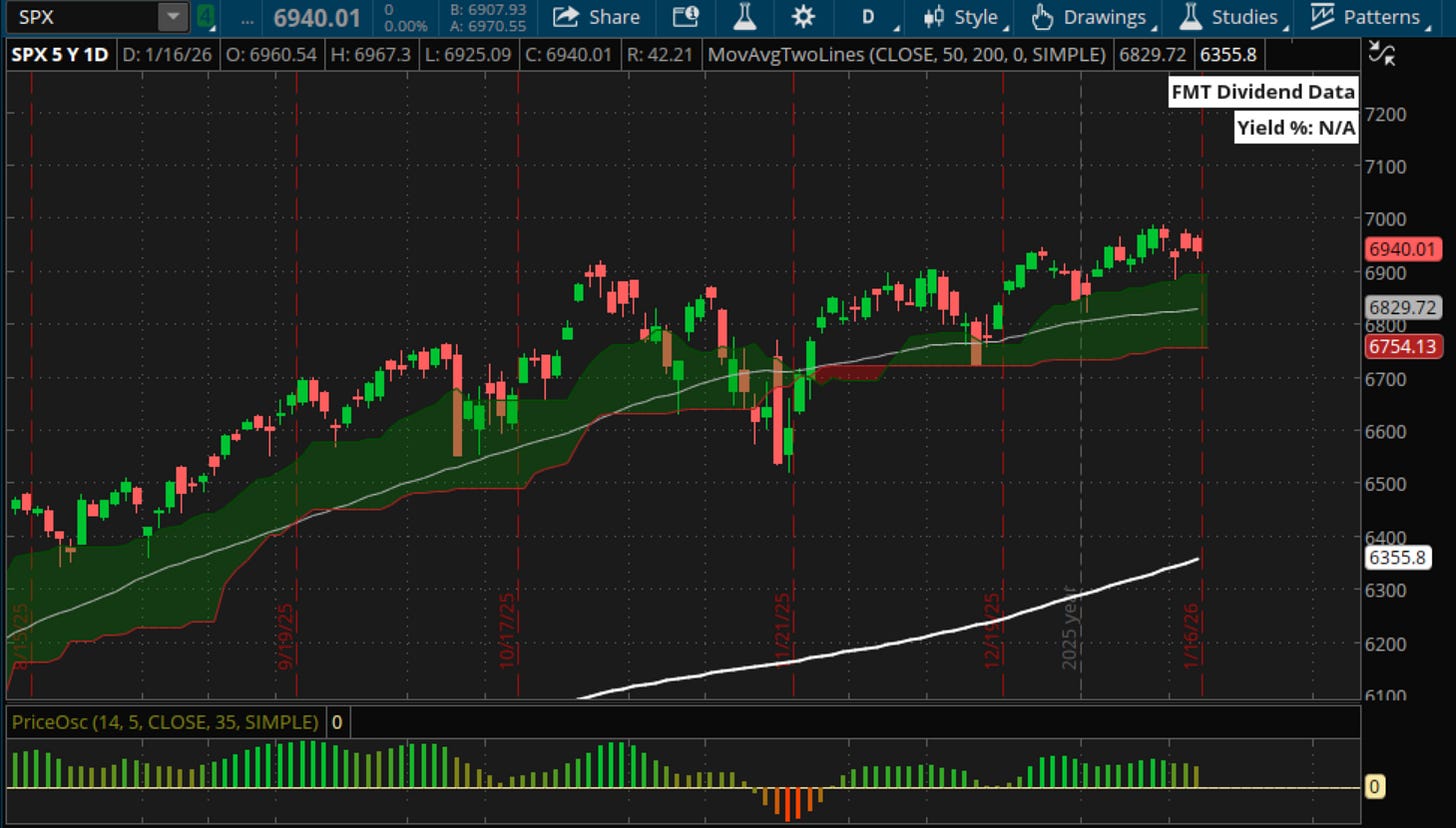The S&P 500 spent much of the week moving sideways, digesting gains from earlier in the month. Beneath the surface, however, capital continued to rotate away from crowded growth themes and into more defensive, cash-flow-oriented areas of the market. Consumer Staples, Utilities, Industrials, Real Estate, and Materials outperformed on a short-term basis, while parts of Technology, Financials, and Communication Services lagged.