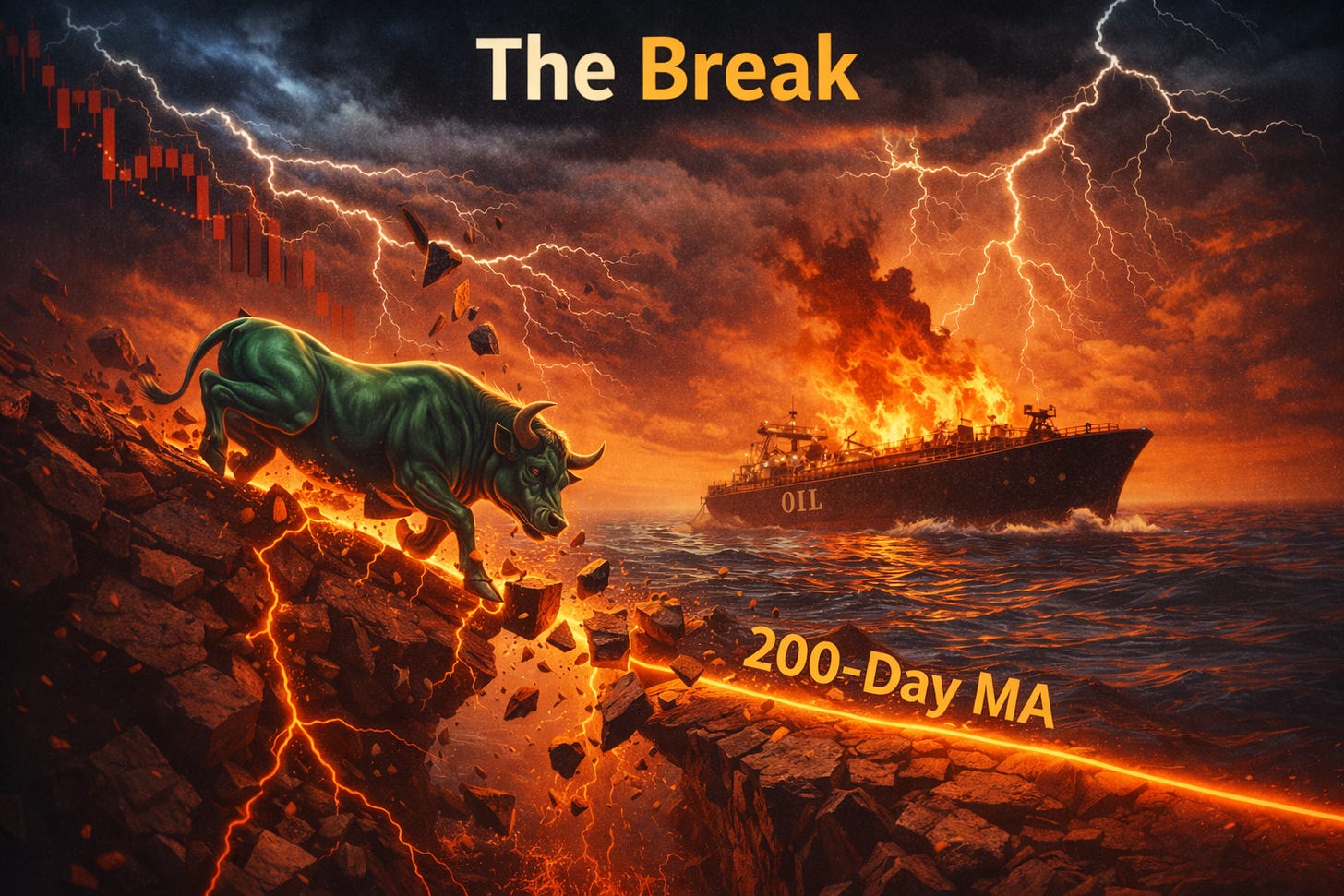 The S&P 500 index broke below its 200-day moving average — a level that had defined the boundary between routine pullbacks and structural weakness for nearly a year.